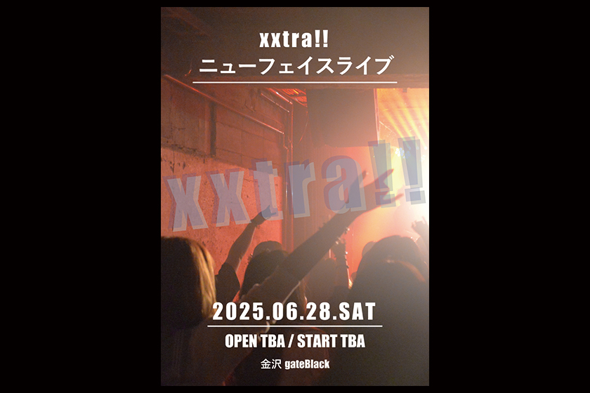 xxtra!! ニューフェイスライブ 6月 28 Sat 2025 LIVE 金沢大学軽音楽部サークル xxtra!! OPEN TBA / START TBA DOOR DRINK ¥500 INFO.gateBlack 076-234-3430 前のスケジュール 次のスケジュール